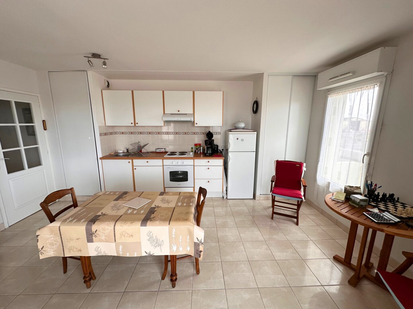 À l’extérieur, une terrasse de 5,10 m² prolonge agréablement l’espace de vie. Elle constitue un véritable atout, permettant de profiter de l’air marin et d’instants privilégiés face au front de mer. Que ce soit pour un petit-déjeuner ensoleillé ou un moment de détente en fin de journée, cet espace extérieur saura séduire les amateurs de bord de mer.
