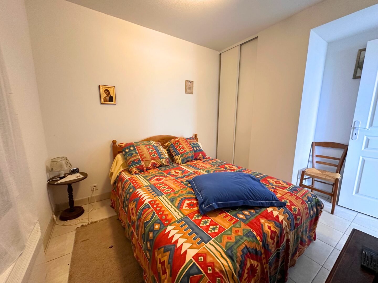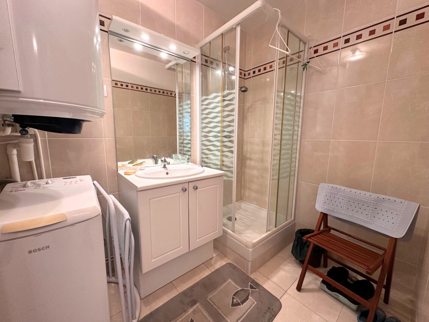 L’appartement comprend également une chambre confortable, offrant un espace nuit agréable et reposant. La salle de bains est équipée d’une douche et d’un lavabo, tandis que les toilettes sont séparées pour davantage de confort au quotidien.