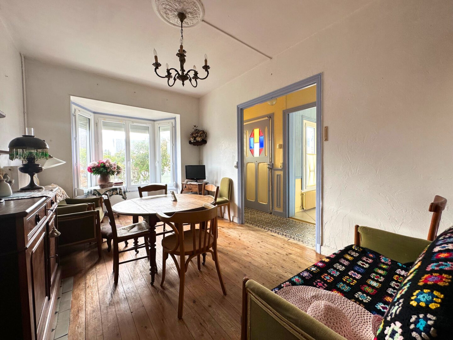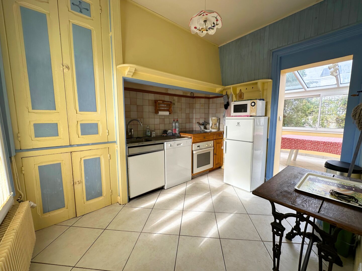 Dès l’entrée, vous découvrirez une atmosphère chaleureuse et conviviale. Le rez-de-chaussée se compose d’une entrée desservant une cuisine aménagée et fonctionnelle, idéale pour préparer vos repas en famille ou entre amis. La salle de séjour, lumineuse et accueillante, offre un bel espace de détente. La véranda offre une véritable pièce supplémentaire qui prolonge agréablement la maison vers le jardin. Une salle de bains avec douche et lavabo, ainsi qu’un WC séparé, complètent ce niveau.