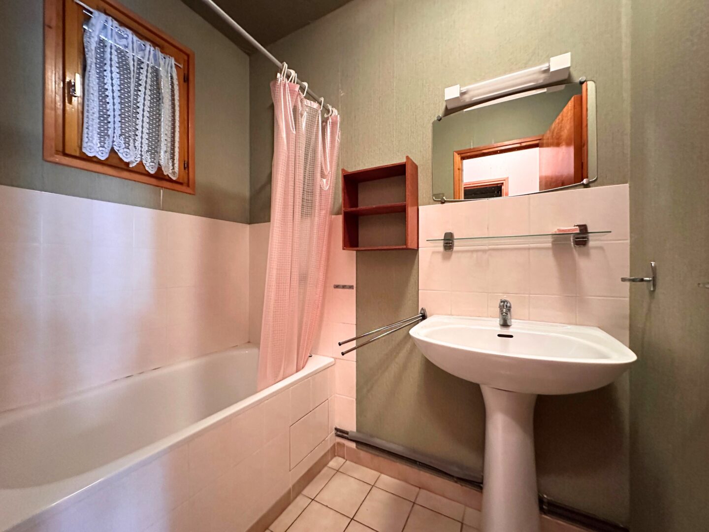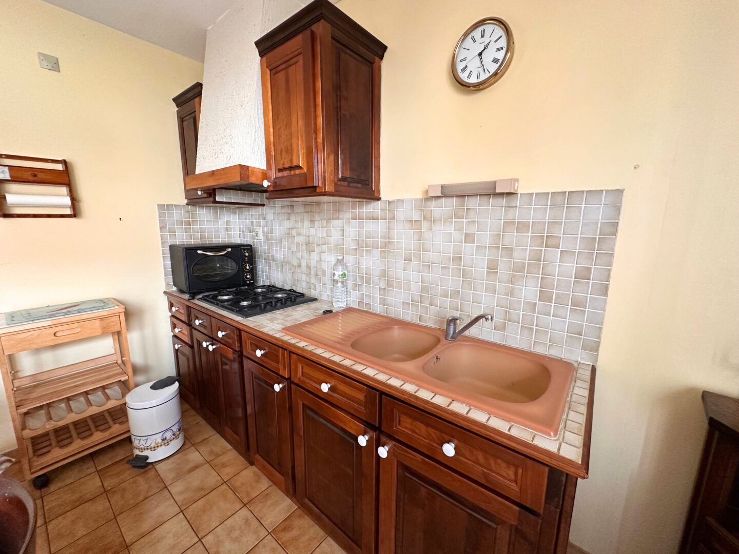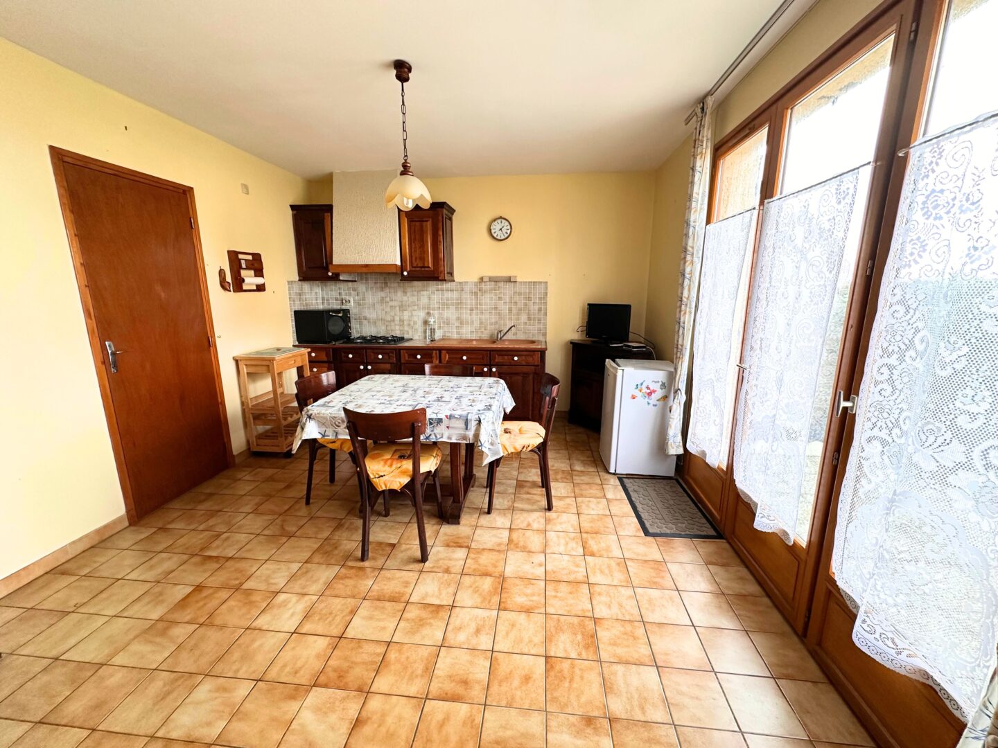 Cette charmante maison se compose au rez-de-chaussée d’une cuisine aménagée ouverte sur une salle de séjour, créant un espace convivial et fonctionnel. Une salle de bains équipée d’une baignoire, d’un lavabo et d’un wc assurent le confort quotidien.